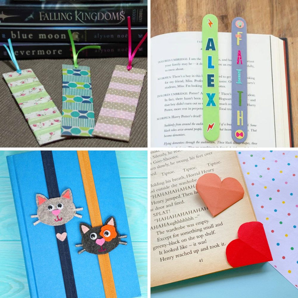/We can never have too many bookmarks in our house, so I went on a search for the cutest, easiest, and most creative DIY bookmark ideas for kids! Whether you’re looking for simple paper crafts, fun ways to use up craft supplies, or something extra special to encourage young readers, this list has a little bit of everything. I’ve rounded up my favorite ideas from around the web—perfect for a cozy craft day with your little bookworms!